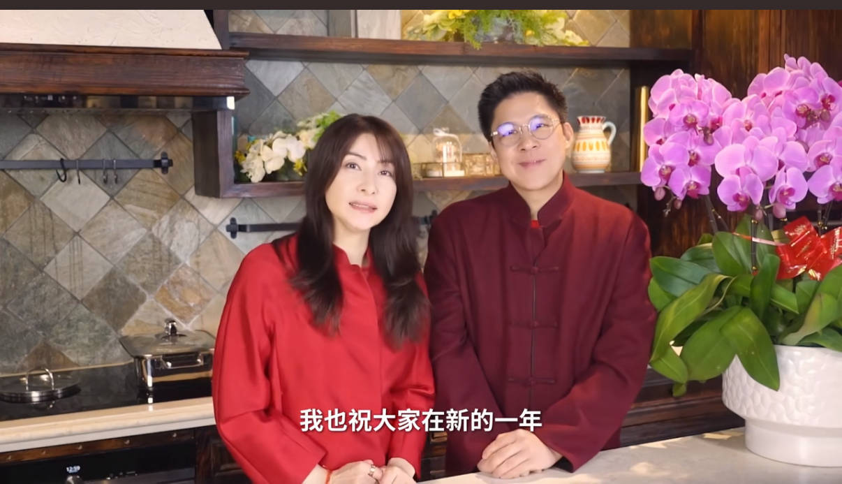 郭晶晶和丈夫一起出镜,只不过她说的不是粤语,而是普通话。郭晶晶长期生活在香港,应该也会说粤语,不过她还是坚持用普通话给大家拜年。